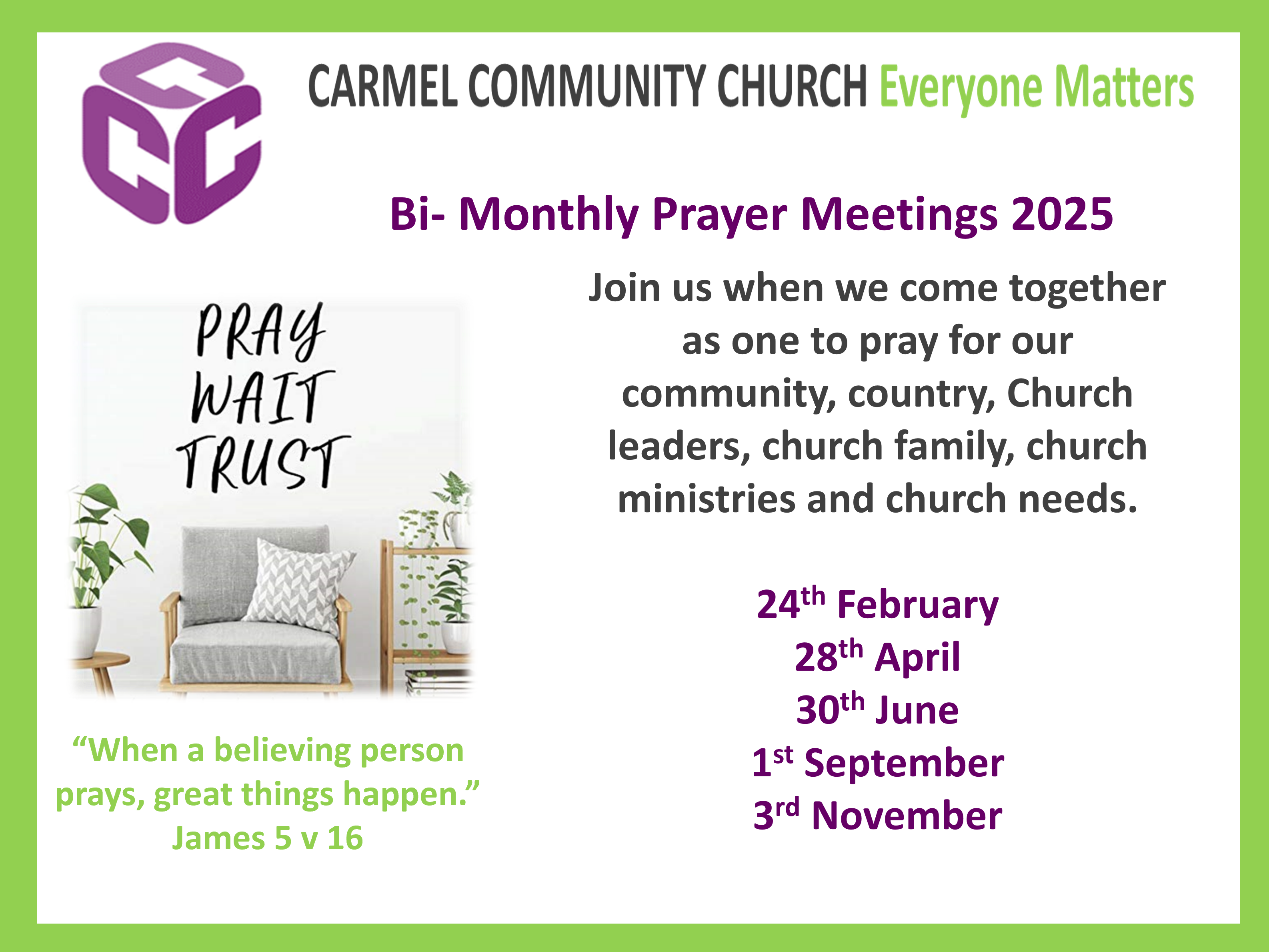 Please join us in church every other month as we come together to pray for those in need and to hear from God.